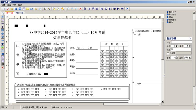 快速生成考试答题卡,答题卡与试卷识别模板同步完成,无需后期重新设计识别模板